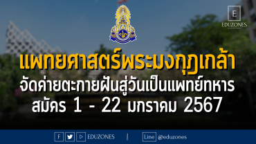 EZ Webmaster November 28, 2023 วิทยาลัยแพทยศาสตร์พระมงกุฎเกล้า จัดค่ายตะกายฝันสู่วันเป็นแพทย์ทหาร : สมัคร 1 – 22 มกราคม 2567 EZ Webmaster November 28, 2023 วิทยาลัยแพทยศาสตร์พระมงกุฎเกล้า จัดค่ายตะกายฝันสู่วันเป็นแพทย์ทหาร : สมัคร 1 – 22 มกราคม 2567 . รายละเอียด สำหรับนักเรียนชั้นมัธยมศึกษาปีที่ 4-6 ผู้เข้าร่วมจะได้เรียนรู้เกี่ยวกับวิชาชีพแพทย์ทหาร หลักสูตรการเรียน และการใช้ชีวิตของนักเรียนแพทย์ทหาร / มีกิจกรรมฐาน เช่น ฟังปอด ฟังเสียงหัวใจ, ทำเฝือก, เจาะเลือดกับหุ่น, ฝึกล้างมือใส่ชุดเข้าห้องผ่าตัด และเรียนรู้ Basic life support (BLS) / ราวน์วอร์ด .… Continue Reading