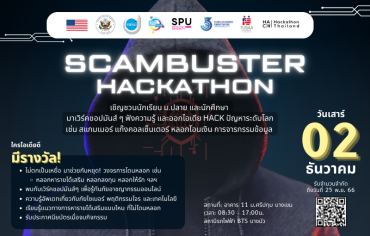 SPU ชวนน้อง ม.ปลาย มา Workshop “ScamBuster Hackathon #1” ScamBuster Hackathon ครั้งที่ 1 EZ Webmaster November 14, 2023 เครือข่ายศิษย์เก่าโครงการแลกเปลี่ยนไทย-สหรัฐอเมริกา ด้วยการสนับสนุนจากทุน YSEALI YOUnified โดย U.S. Embassy in Bangkok และคณะบริหารธุรกิจ มหาวิทยาลัยศรีปทุม ขอเชิญน้องๆ ม.ปลาย ที่สนใจมาเช้าร่วมค่ายเวิร์คชอปหนึ่งวัน สไตล์ Hackathon เพื่อเรียนรู้ ป้องกันการโกง และหยุดยั้งมิจฉาชีพออนไลน์ (Scammer) โดยค่ายนี้จะเปิดโอกาสให้ทุกคนได้เข้ามาทำความเข้าใจกลโกงมิจฉาชีพออนไลน์ในรูปแบบต่างๆ อย่างครบวงจรเป็นครั้งแรกของประเทศไทย! ทำกิจกรรมร่วมกับผู้เชี่ยวชาญ เช่น ตำรวจ อัยการ software engineer นักธุรกิจ และทนายความ ลงมือทำเวิร์คชอป ระดมไอเดีย เพื่อช่วยให้สังคม รู้จักป้องกัน และเอาตัวรอดจากพวก Scammer แสดงไอเดีย และฝีมือ ทำสื่อ (Media) เพื่อให้ความรู้ หรือ ป้องกันมิจฉาชีพออนไลน์ พิเศษสุดๆ !! – มีเงินรางวัลสำหรับผู้มีผลงานถูกใจกรรมการ – มีโอกาสในการทำความรู้จักทุนแปลกเปลี่ยนสหรัฐอเมริกา – รับประกาศนียบัตรสำหรับการผ่านการเวิร์คชอปทุกคน พบกันวันเสาร์ที่ 2 ธ.ค. 66 เวลา 08.30 – 17.00 น. มหาวิทยาลัยศรีปทุม บางเขน รายละเอียดเพิ่มเติม… Continue Reading