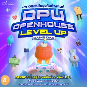 สิ้นสุดการรอคอย เปิดบ้าน DPU ม.ธุรกิจบัณฑิตย์ จัดใหญ่ในธีม LEVEL UP : Game Day ท้า Dek67-68-69 มาออกแบบอนาคตไปด้วยกัน EZ Webmaster November 6, 2023 เปิดบ้านมหาวิทยาลัยธุรกิจบัณฑิตย์ DPU OPEN HOUSE LEVEL UP : Game Day ดินแดนแห่งการเรียนรู้พร้อมเปิดประตูต้อนรับ Dek67-68-69 เข้ามาสัมผัสบรรยากาศจริงของมหาวิทยาลัย สนุกไปกับเกมค้นหาตัวตน DPU Career Quiz และกิจกรรมเด็ดๆ ที่ช่วยแมทช์คาแรคเตอร์กับคณะหรือวิทยาลัยที่ใช่ พร้อมพูดคุยแลกเปลี่ยนมุมมองการเรียนต่อกับรุ่นพี่อินฟลูเอนเซอร์ผู้มีประสบการณ์ตรง เพื่อให้ทุกคนได้เริ่มสะสมสกิลเทพสู่การเป็น MVP ในสายงานแห่งอนาคต พร้อมรับเกียรติบัตรทันที! และยังมีสิทธิ์ลุ้นรับรางวัลสุดพิเศษ Nintendo Switch Lite ห้ามพลาดความสนุกแบบจัดเต็มตลอดทั้งวัน พบกันวันที่ 23-25 พฤศจิกายน 2566 เวลา 09.00 น. เป็นต้นไป ณ มหาวิทยาลัยธุรกิจบัณฑิตย์ ลงทะเบียนล่วงหน้าได้ตั้งแต่วันนี้ เพื่อจองสิทธิ์เข้าร่วมงาน DPU OPEN HOUSE พิเศษ!… Continue Reading