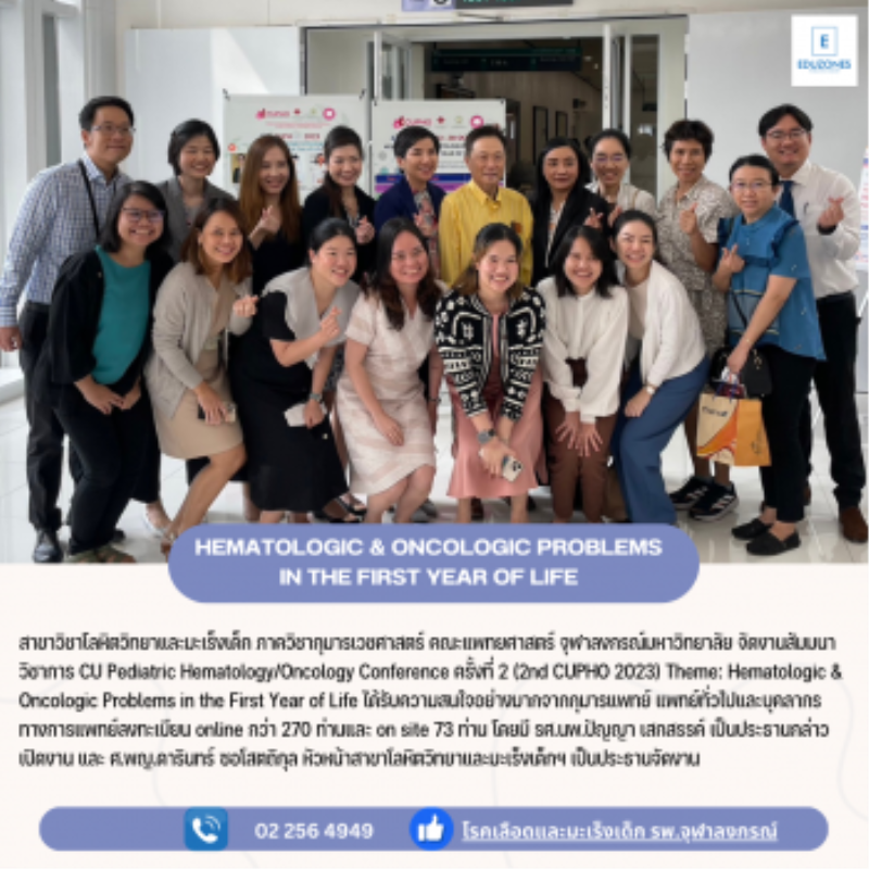 โลหิตวิทยาและมะเร็งเด็ก คณะแพทยศาสตร์ จุฬาฯ จัดงานสัมมนาวิชาการ CU Pediatric Hematology/Oncology Conference ครั้งที่ 2 tui sakrapee November 1, 2023 สาขาวิชาโลหิตวิทยาและมะเร็งเด็ก ภาควิชากุมารเวชศาสตร์ คณะแพทยศาสตร์ จุฬาลงกรณ์มหาวิทยาลัย จัดงานสัมมนาวิชาการ CU Pediatric Hematology/Oncology Conference ครั้งที่ 2 (2nd CUPHO 2023) Theme: Hematologic & Oncologic Problems in the First Year of Life ได้รับความสนใจอย่างมากจากกุมารแพทย์ แพทย์ทั่วไปและบุคลากรทางการแพทย์ลงทะเบียน online กว่า 270 ท่านและ on site 73 ท่าน โดยมี รศ.นพ.ปัญญา เสกสรรค์ เป็นประธานกล่าวเปิดงาน และ ศ.พญ.ดารินทร์ ซอโสตถิกุล… Continue Reading