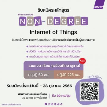 ราชมงคลพระนคร เปิดรับสมัครผู้สนใจ Reskill-Upskill หลักสูตร NON-Degree “อินเทอร์เน็ตของสรรพสิ่ง และพัฒนานวัตกรรมสำหรับการเป็นผู้ประกอบการ” ฟรี EZ Webmaster October 24, 2023 คณะครุศาสตร์อุตสาหกรรม มหาวิทยาลัยเทคโนโลยีราชมงคลพระนคร เปิดรับสมัครบุคคลที่สนใจทุกเพศ ทุกวัย ที่มีใจใฝ่เรียนรู้ เข้าร่วมโครงการบัณฑิตพันธุ์ใหม่ ประเภทประกาศนียบัตร NON-Degree “หลักสูตรอินเทอร์เน็ตของสรรพสิ่ง และพัฒนานวัตกรรมสำหรับการเป็นผู้ประกอบการ” ประจำปี 2566 เพื่อเพิ่มทักษะและความรู้ (Reskill-Upskill) เกี่ยวกับเทคโนโลยีที่ใช้ในการพัฒนานวัตกรรมอินเทอร์เน็ตของสรรพสิ่ง (Internet of Things : IoT) ให้แก่ผู้ประกอบการ ภายใต้การสนับสนุนโดยสำนักงานปลัดกระทรวงการอุดมศึกษา วิทยาศาสตร์ วิจัยและนวัตกรรม (อว.) ในการสร้างกำลังคนที่มีสมรรถนะสูงสำหรับอุตสาหกรรม New Growth Engine ตามนโยบาย Thailand 4.0 และการปฏิรูปการอุดมศึกษาไทย ซึ่งเป็นหลักสูตรที่ผสมผสานสัดส่วนของวิชาการและวิชาชีพอย่างลงตัว สร้างโอกาสนักศึกษาได้เรียนรู้การปฏิบัติงานจริงที่ตรงกับความต้องการตลาดแรงงาน พร้อมเพิ่มอาชีพให้คนวัยทำงาน เกิดการเรียนรู้ตลอดชีวิต (lifelong learning) ทั้งนี้หลักสูตรอินเทอร์เน็ตของสรรพสิ่ง และพัฒนานวัตกรรมสำหรับการเป็นผู้ประกอบการ ประจำปี… Continue Reading
