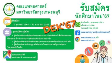 “คณะแพทยศาสตร์ ม.กรุงเทพธนบุรี” เปิดรับ DEK’67 เรียนหมอรุ่นใหม่ วันนี้ tui sakrapee October 13, 2023 โอกาสดีสำหรับน้องๆ ที่สนใจเรียนหมอ คณะแพทยศาสตร์ มหาวิทยาลัยกรุงเทพธนบุรี รับสมัครนักศึกษาใหม่’67 วันเวลารับสมัคร: ตั้งแต่วันที่ 10 ตุลาคม 2566 – 31 มกราคม 2567 คุณสมบัติของผู้สมัคร 1. ผู้สำเร็จการศึกษาระดับมัธยมศึกษาตอนปลาย (ม.6) หรือกำลังศึกษาในชั้นมัธยมตอนปลายชั้นปีสุดท้าย ซึ่งคาดว่าจะสำเร็จการศึกษาในเดือนกุมภาพันธ์ 2567 หรือ 2. ผู้สำเร็จการศึกษาระดับมัธยมศึกษาตอนปลายจากต่างประเทศหรือโรงเรียนนานาชาติ หรือ 3. ผู้สำเร็จการศึกษาระดับปริญญาตรีหรือสูงกว่า ในสายวิทยาศาสตร์สุขภาพหรือสายวิทยาศาสตร์ที่เกี่ยวข้อง สมัครด้วยตนเองได้ที่ : งานรับสมัคร ชั้น 1 คณะแพทยศาสตร์ ฝ่ายรับสมัคร : 02-800-6800 ถึง 5 หรือ 081-635-2536 (ผศ.ดร.ณัฐวรรณ… Continue Reading