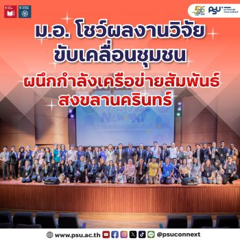 ม.อ. ตรัง โชว์ผลงานวิจัยขับเคลื่อนชุมชน ผนึกกำลังเครือข่ายสัมพันธ์ สงขลานครินทร์ EZ Webmaster October 12, 2023 มหาวิทยาลัยสงขลานครินทร์ เปิดโครงการเครือข่ายสัมพันธ์ สงขลานครินทร์ ครั้งที่ 4 (The 4th PSU Network on Trang Campus) เพื่อเปิดโอกาสให้สื่อมวลชนได้เห็นผลงานที่เป็นรูปธรรมของมหาวิทยาลัย โดยเฉพาะผลงานเพื่อชุมชน รวมทั้งเป็นการกระชับความสัมพันธ์ และสร้างเครือข่ายการสื่อสารผลงานและกิจกรรมมหาวิทยาลัยสู่สื่อมวลชนให้แน่นแฟ้นยิ่งขึ้น โดยในปีนี้จัดขึ้นที่มหาวิทยาลัยสงขลานครินทร์ วิทยาเขตตรัง ระหว่างวันที่ 11-13 ตุลาคม 2566 โดยมี ผศ. ดร.นิวัติ แก้วประดับ อธิการบดี เป็นประธานเปิดงาน พร้อมด้วย ผศ. ดร.พงค์เทพ สุธีรวุฒิ รองอธิการบดีฝ่ายบริหารและยุทธศาสตร์ และรักษาการแทนรองอธิการบดีวิทยาเขตตรัง ผศ. ดร.เถกิง วงศ์ศิริโชติ รองอธิการบดีฝ่ายวิชาการและวิเทศสัมพันธ์ คณะผู้บริหาร คณาจารย์ บุคลากร และนักศึกษา… Continue Reading