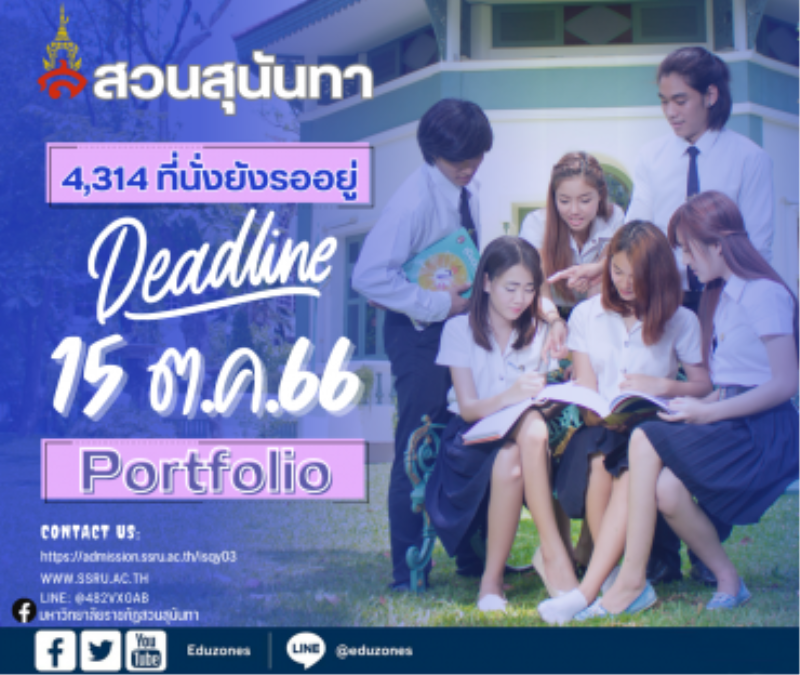 บพค. จับมือ มทร.ธัญบุรี ผลิตกำลังคนด้านยานยนต์ไฟฟ้าและ AI หนุนอุตสาหกรรมไทย tui sakrapeeApril 28, 2026 หน่วยบริหารและจัดการทุนด้านเทคโนโลยีและนวัตกรรมเพื่ออุตสาหกรรมแห่งอนาคต (บพค.) ร่วมกับ มทร.ธัญบุรี เดินหน้าโครงการพัฒนากำลังคนสมรรถนะสูงระยะที่ 2 มุ่งเน้นอัปสกิลช่างเทคนิค วิศวกร และนักวิจัย ให้มีความเชี่ยวชาญด้านเทคโนโลยีเครื่องอัดประจุไฟฟ้าและการซ่อมบำรุงด้วยปัญญาประดิษฐ์ พร้อมรองรับการเติบโตของอุตสาหกรรมยานยนต์แห่งอนาคตในประเทศไทย คณะวิศวกรรมศาสตร์ มหาวิทยาลัยเทคโนโลยีราชมงคลธัญบุรี (มทร.ธัญบุรี) จัดโครงการพัฒนากำลังคนสมรรถนะสูงในอุตสาหกรรมยานยนต์ไฟฟ้า ด้านเทคโนโลยีเครื่องอัดประจุยานยนต์และการซ่อมบำรุงด้วยระบบปัญญาประดิษฐ์ (ระยะที่ 2)… เรียนฟรี! คณะแพทยศาสตร์ มช. เปิดคอร์ส “กายวิภาคศาสตร์มนุษย์พื้นฐาน” เรียนออนไลน์ได้ถึง 31 ก.ค. 2569 EZ WebmasterApril 22, 2026 🧠✨ เรียนฟรี! คณะแพทยศาสตร์ มช. เปิดคอร์ส “กายวิภาคศาสตร์มนุษย์พื้นฐาน” เรียนออนไลน์ได้ถึง 31 ก.ค. 2569 โอกาสดีสำหรับน้อง ๆ นักเรียน นักศึกษา และผู้ที่สนใจสายสุขภาพ ล่าสุด คณะแพทยศาสตร์ มหาวิทยาลัยเชียงใหม่… เปิดจักรวาล “สายพยาบาล” ✨ ชวนน้อง ม.ปลาย ร่วมงานใหญ่แห่งปี จากสถาบันการพยาบาลศรีสวรินทิรา EZ WebmasterApril 19, 2026 🏥 เปิดจักรวาล “สายพยาบาล” ✨ ชวนน้อง ม.ปลาย ร่วมงานใหญ่แห่งปี จากสถาบันการพยาบาลศรีสวรินทิรา ใครสนใจสายสุขภาพ ห้ามพลาด! ✨สถาบันการพยาบาลศรีสวรินทิรา สภากาชาดไทย ขอเชิญชวนน้อง ๆ ระดับมัธยมปลาย และประชาชนทั่วไป เข้าร่วมกิจกรรมเปิดบ้านสุดยิ่งใหญ่ ภายใต้ธีม… ม.เกริก ผนึกกำลัง 14 สถาบันอุดมศึกษาชั้นนำ ร่วมลงนาม MOU ยกระดับการพัฒนาสังคมและงานวิจัยระดับชาติ tui sakrapeeApril 15, 2026 มหาวิทยาลัยเกริก ผนึกกำลัง 14 สถาบันอุดมศึกษาชั้นนำ ร่วมลงนาม MOU ยกระดับการพัฒนาสังคมและงานวิจัยระดับชาติ ณ สถาบันบัณฑิตพัฒนบริหารศาสตร์ (NIDA) วันที่ 9 เมษายน 2569 ณ สถาบันบัณฑิตพัฒนบริหารศาสตร์ (NIDA) มหาวิทยาลัยเกริก… Search for: Search Classic Blog คว้าโอกาสด่วน “สวนสุนันทา” ยื่น Portfolio รับ 4,314 ที่นั่ง ถึง 15 ต.ค.นี้ tui sakrapee October 12, 2023 มหาวิทยาลัยราชภัฏสวนสุนันทา เปิดรับสมัครบุคคลเข้าศึกษาในมหาวิทยาลัย ราชภัฏสวนสุนันทาภาคปกติ ระดับปริญญาตรี ประจำปีการศึกษา 2567 (รอบที่ 1 Portfolio) รับตรง ครั้งที่2 จำนวนรับนักศึกษา คณะวิทยาศาสตร์และเทคโนโลยี จำนวนรับ (คน) 582 คณะเทคโนโลยีอุตสาหกรรม จำนวนรับ (คน) 280 คณะมนุษยศาสตร์และสังคมศาสตร์ จำนวนรับ (คน) 456 คณะศิลปกรรมศาสตร์ จำนวนรับ (คน) 312 คณะวิทยาการจัดการ จำนวนรับ (คน) 544 วิทยาลัยนวัตกรรมและการจัดการ จำนวนรับ (คน) 152 วิทยาลัยสถาปัตยกรรมศาสตร์ 