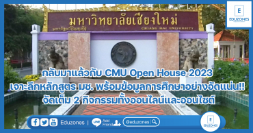 กลับมาแล้วกับ CMU Open House 2023 เจาะลึกหลักสูตร มช. พร้อมข้อมูลการศึกษาอย่างอัดแน่น!! จัดเต็ม 2 กิจกรรมทั้งออนไลน์และออนไซต์ EZ Webmaster October 9, 2023 มหาวิทยาลัยเชียงใหม่เปิดบ้านรับนักเรียนและผู้สนใจศึกษาต่อในชั้นอุดมศึกษา กับกิจกรรม CMU Open House ประจำปี 2566 เพื่อประชาสัมพันธ์หลักสูตรแบบเจาะลึกของมหาวิทยาลัยเชียงใหม่ นำเสนอข้อมูลด้านการสมัครเข้ารับการศึกษา ทุกสาขาวิชา ทุกคณะ ให้แก่นักเรียน นักศึกษา ครู ผู้ปกครอง และผู้สนใจทั่วไป ให้สามารถเข้าถึงข้อมูลของมหาวิทยาลัยเชียงใหม่ และสถาบันการศึกษาต่าง ๆ จากทั่วประเทศ กิจกรรม CMU Open House Online 2023 “Next You, Next CMU : ชีวิตดี ๆ ที่ มช.” มาเป็นลูกช้างเชือกใหม่ที่มี CMU DNA เป็นตัวเองในเวอร์ชันที่ติดอาวุธครบ พร้อมรับมือต่อการเปลี่ยนแปลงของโลกในอนาคต กำหนดการ: วันเสาร์ที่… Continue Reading