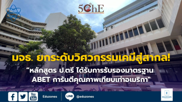 EZ Webmaster October 6, 2025 “มจธ. ยกระดับวิศวกรรมเคมีสู่สากล! หลักสูตร ป.ตรี ได้รับการรับรองมาตรฐาน ABET การันตีคุณภาพเทียบเท่าอเมริกา” EZ Webmaster October 6, 2025 มจธ. ยกระดับวิศวกรรมเคมีสู่สากล! “หลักสูตร ป.ตรี ได้รับการรับรองมาตรฐาน ABET การันตีคุณภาพเทียบเท่าอเมริกา” ภาควิชาวิศวกรรมเคมี คณะวิศวกรรมศาสตร์ มหาวิทยาลัยเทคโนโลยีพระจอมเกล้าธนบุรี (มจธ.) ประกาศความสำเร็จครั้งสำคัญ ด้วยการได้รับการรับรองหลักสูตรวิศวกรรมศาสตรบัณฑิต สาขาวิชาวิศวกรรมเคมี ในระดับปริญญาตรีจาก Accreditation Board for Engineering and Technology (ABET) ซึ่งเป็นองค์กรรับรองมาตรฐานการศึกษาด้านวิศวกรรมศาสตร์ชั้นนำของสหรัฐอเมริกา ความสำเร็จนี้ถือเป็นการยกระดับคุณภาพการเรียนการสอนด้านวิศวกรรมเคมีของประเทศไทยสู่มาตรฐานสากลอย่างแท้จริง การรับรองจาก ABET ถือเป็นเครื่องหมายการันตีคุณภาพที่ทั่วโลกให้การยอมรับ โดยเฉพาะอย่างยิ่งในสหรัฐอเมริกาและหลายประเทศ การที่หลักสูตรของภาควิชาวิศวกรรมเคมี คณะวิศวกรรมศาสตร์… Continue Reading