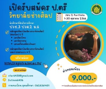 วิทยาลัยช่างศิลป เปิดรับสมัครบุคคลเข้าศึกษาต่อระดับปริญญาตรี ปีการศึกษา 2567 EZ Webmaster October 6, 2023 วิทยาลัยช่างศิลป สถาบันบัณฑิตพัฒนศิลป์รับสมัครบุคคลเข้าศึกษาต่อในระดับปริญญาตรี หลักสูตรศิลปบัณฑิต สาขาวิชาทัศนศิลป์ (ต่อเนื่อง) และสาขาทัศนศิลป์และการออกแบบ รอบที่ 2 (Portfolio) ประจำปีการศึกษา ๒๕๖๗ รายละเอียดและสมัครได้ที่เว็บไซต์ http://registra.bpi.ac.th/ หัวข้อ “รับสมัครอุดมศึกษา” ตั้งแต่วันที่ 1-30 ตุลาคม 2566 Continue Reading