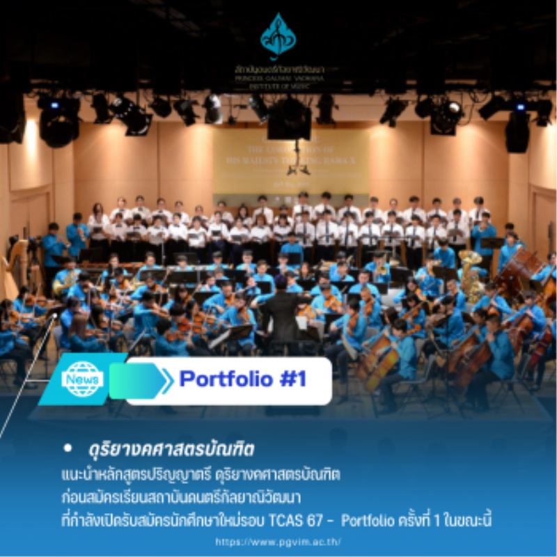 แนะนำหลักสูตรปริญญาตรี ดุุริยางคศาสตรบัณฑิต ก่อนสมัครเรียนสถาบันดนตรีกัลยาณิวัฒนา ที่กำลังเปิดรับรอบ Portfolio ในขณะนี้ tui sakrapee September 24, 2023 สถาบันดนตรีกัลยาณิวัฒนาเปิดรับสมัครนักศึกษาใหม่ รอบ TCAS 67 – Portfolio ครั้งที่ 1 หลักสูตรปริญญาตรี ดุริยางคศาสตรบัณฑิต รายละเอียดเพิ่มเติม https://www.pgvim.ac.th/admission/information_Portfolio.php หรือ 0 2447 8597 ต่อ 2104 Princess Galyani Vadhana Institute of Music Bachelor of Music Program – New Student Admission TCAS 67 – Portfolio #1 is now open. For more… Continue Reading