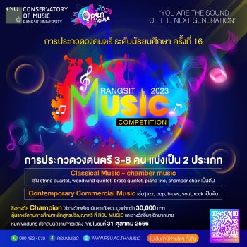ม.รังสิต จัดประกวดวงดนตรี ระดับมัธยมฯ ครั้งที่ 16 ชิงรางวัลกว่า 30,000 บาท พร้อมทุนการศึกษาเรียนต่อ ป.ตรี EZ Webmaster September 20, 2023 วิทยาลัยดนตรี มหาวิทยาลัยรังสิต จัดการประกวดวงดนตรี ระดับมัธยมศึกษา ครั้งที่ 16 (Rangsit Music Competition 2023) เปิดรับสมัครนักเรียนมัธยมศึกษา ที่กำลังศึกษาอยู่ระดับชั้นมัธยมศึกษา (ม.1 – ม.6) หรือเทียบเท่า ร่วมการประกวดวงดนตรีสากล สมาชิก 3 – 8 คน โดยแบ่งเป็นสองประเภท ได้แก่ ประเภทแรก Classical Music – Chamber Music ประเภทที่สอง Contemporary Commercial Music เพื่อชิงรางวัล Champion สุดยอดวงดนตรี เงินรางวัลกว่า 30,000 บาท และทุนการศึกษาหลักสูตรปริญญาตรี และรางวัลอื่น ๆ อีกมากมาย สำหรับผู้สนใจสามารถสมัครและส่งคลิปผลงานการแสดงได้ตั้งแต่วันนี้ถึง 31 ตุลาคม 2566 (ไม่เสียค่าใช้จ่ายในการสมัคร) สอบถามรายละเอียดเพิ่มเติม โทร. 080 462 4979 หรือเพจ RSU Music Competition Continue Reading