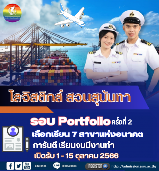 tui sakrapee September 18, 2023 โลจิสติกส์ สวนสุนันทา เปิดรับรอบ Portfolio ครั้งที่ 2 เลือกเรียน 7 สาขาแห่งอนาคต จำกัด 504 ที่นั่ง tui sakrapee September 18, 2023 วิทยาลัยโลจิสติกส์และซัพพลายเชน มหาวิทยาลัยราชภัฏสวนสุนันทา เปิดรับสมัคร น้อง ๆ ที่ต้องการเดินสู่เส้นทางสายอนาคตในโลกของโลจิสติกส์และซัพพลายเชน เป็นที่พิสูจน์แล้วว่า เรียนสายนี้ จบมารายได้ดี มีงานมั่นคงทำแน่นอน ปีการศึกษา 2567 นี้ เตรียมตัวให้พร้อม เพื่อการันตีมีที่เรียน มีอนาคตสดใสกว่าใคร สาขาวิชาที่เปิดรับ เปิดรับใน 7 สาขาแห่งอนาคต ในจำนวนจำกัด กำหนดการรับสมัคร Portfolio ครั้งที่ 2 ปริญญาตรี ภาคปกติ เปิดรับตั้งแต่วันที่ 1 – 15 ตุลาคม… Continue Reading