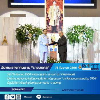 tui sakrapee September 15, 2023 มทร.ธัญบุรี จัดพิธีน้อมรำลึก-มอบรางวัลราชมงคลสรรเสริญ วันพระราชทานนาม “ราชมงคล” tui sakrapee September 15, 2023 เมื่อวันที่ 15 กันยายน 2566 พลเอก สุรยุทธ์ จุลานนท์ ประธานองคมนตรี เป็นประธานมอบรางวัลผู้มีผลงานดีเด่นทางวัฒนธรรม “รางวัลราชมงคลสรรเสริญ 2566” เนื่องในโอกาสวันคล้ายวันพระราชทานนาม “ราชมงคล” ณ หอประชุมมหาวิทยาลัยเทคโนโลยีราชมงคลธัญบุรี รองศาสตราจารย์ ดร. สมหมาย ผิวสอาด อธิการบดี มทร.ธัญบุรี เผยว่า ทุกวันที่ 15 กันยายน ของทุกปี ทางมหาวิทยาลัยจัดพิธีเนื่องในโอกาสวันคล้ายวันพระราชทานนาม “ราชมงคล” โดยพิธีช่วงเช้า ผู้บริหาร อาจารย์ เจ้าหน้าที่… Continue Reading