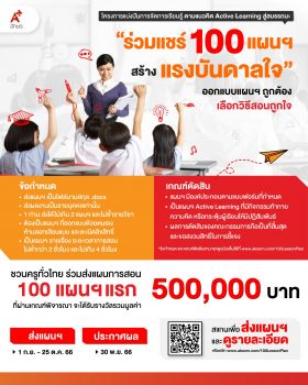 โครงการแบ่งปันการจัดการเรียนรู้ตามแนวคิด Active Learning สู่สมรรถนะ “ร่วมแชร์ 100 แผนฯ สร้างแรงบันดาลใจ” EZ Webmaster September 12, 2023 มีของดีต้องแชร์! คุณครูท่านไหนคิดว่าตัวเองมีแผนการจัดการเรียนรู้ดี เปลี่ยนห้องเรียนธรรมดา ให้มีชีวิตชีวามากกว่าเดิม อย่าเก็บแผนฯ นั้นไว้คนเดียว มาร่วมแชร์แผนฯ นั้นไปกับเรา . โครงการแบ่งปันการจัดการเรียนรู้ตามแนวคิด Active Learning สู่สมรรถนะ “ร่วมแชร์ 100 แผนฯ สร้างแรงบันดาลใจ” . เปิดให้คุณครูทั่วไทยร่วมแบ่งปันแผนการจัดการเรียนรู้ที่ใช้ได้จริง สอนแล้วได้ผลจริง ไม่เลียนแบบ และละเมิดลิขสิทธิ์ . โดย 100 แผนฯ แรกที่ได้รับการคัดเลือกตามเกณฑ์การพิจารณาตัดสิน จะได้รับรางวัลรวมมูลค่ากว่า 500,000 บาท พร้อมใบประกาศเกียรติคุณ . ส่งผลงานได้ตั้งแต่ 1 ก.ย. – 25 ต.ค. 2566 ประกาศผล 30 พ.ย.… Continue Reading
