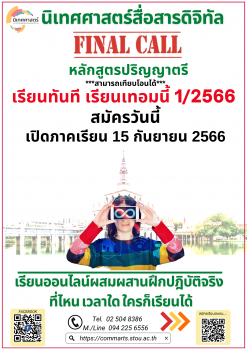 Final Call นิเทศศาสตร์ การสื่อสารดิจิทัล มสธ. เรียนออนไลน์ผสมผสานฝึกปฎิบัติจริง เรียนทันที เรียนเทอมนี้ 1/2566 รับสมัครถึง15 ก.ย.นี้ tui sakrapee September 4, 2023 🤙 Final Call (phone heart) โอกาสทางการศึกษามาถึงแล้ว… 🧑🎓👩🎓เรียนทันที เรียนเทอมนี้ 1/2566 สมัครถึงวันที่ 18 กันยายน 2566 🧑🎓👩🎓เรียนปริญญาตรี สาขานิเทศศาสตร์ การสื่อสารดิจิทัล มสธ. เรียนออนไลน์ผสมผสานฝึกปฎิบัติจริง “มสธ.ที่ไหน เวลาใด ใครก็เรียนได้” ✅หลักสูตรปริญญาตรี 4 ปี – นิเทศศาสตรบัณฑิต การสื่อสารดิจิทัล 📌สามารถเทียบโอนได้📌 👉 รายละเอียดหลักสูตร หลักสูตรปริญญาตรี 👉สมัครเรียนในหลักสูตรนิเทศศาสตรบัณฑิต http://cs.stou.ac.th/enroll/OnlineApplication.aspx 📌สมัครด้วยตนเองได้ที่ : 1) ศูนย์บริการร่วมแบบครบวงจร 9/9 หมู่ 9 ต.บางพูด อ.ปากเกร็ด… Continue Reading