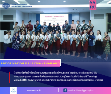 สวนสุนันทา ร่วมกับ UiTM จัดกิจกรรมแลกเปลี่ยนศิลปวัฒนธรรมไทย-มาเลเซีย tui sakrapee August 18, 2023 สวนสุนันทา ร่วมกับ UiTM จัดกิจกรรมแลกเปลี่ยนศิลปวัฒนธรรมไทย-มาเลเซีย “ART OF NATION MALAYSIA – THAILAND” วันที่ 17 สิงหาคม 2566 – ฝ่ายวิเทศสัมพันธ์ พร้อมด้วยคณะมนุษยศาสตร์และสังคมศาสตร์ คณะวิทยาการจัดการ วิทยาลัยพยาบาลและสุขภาพ และคณะศิลปกรรมศาสตร์ ร่วมกับ Universiti Teknologi MARA (UiTM), Kedah branch ประเทศมาเลเซีย จัดกิจกรรมแลกเปลี่ยนศิลปวัฒนธรรมไทย-มาเลเซีย “ART OF NATION MALAYSIA – THAILAND” และรับฟังการบรรยายในหัวข้อ “How to handle stress” โดยได้รับเกียรติจาก ผู้ช่วยศาสตราจารย์… Continue Reading