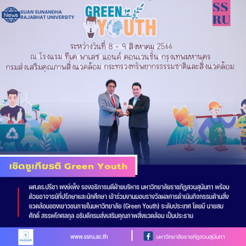 รองอธิการบดีฝ่ายบริหารสวนสุนันทา รับโล่เชิดชูเกียรติ การส่งเสริมสิ่งแวดล้อมของเยาวชนในมหาวิทยาลัย tui sakrapee August 12, 2023 วันพุธที่ 9 สิงหาคม 2566 เวลา 11.00 – 16.00 น. ผู้ช่วยศาสตราจารย์ ดร.ปรีชา พงษ์เพ็ง รองอธิการบดีฝ่ายบริหาร พร้อมด้วย ผู้ช่วยศาสตราจารย์ ดร. ฒาลิศา เนียมมณี รองคณบดีฝ่ายบริหาร ผศ.ดร.พรรณทิพย์ กาหยี อาจารย์ที่ปรึกษาสาขาวิชาวิทยาศาสตร์สิ่งแวดล้อม และนักศึกษาผู้เข้าร่วมการดำเนินกิจกรรม ของคณะวิทยาศาสตร์และเทคโนโลยี มหาวิทยาลัยราชภัฏสวนสุนันทา เข้าร่วมงานมอบรางวัลผลการดำเนินกิจกรรมด้านสิ่งแวดล้อมของเยาวชนภายในมหาวิทยาลัย (Green Youth) ระดับประเทศ ประจำปี 2565 และรับโล่เชิดชูเกียรติ ระดับทองแดง โดยมี นายสมศักดิ์ สรรพโกศลกุล อธิบดีกรมส่งเสริมคุณภาพสิ่งแวดล้อม เป็นประธานในพิธีเปิดและให้เกียรติมอบโล่เชิดชูเกียรติ ณ ห้องประชุมชั้น 6 โรงแรมทีเค… Continue Reading