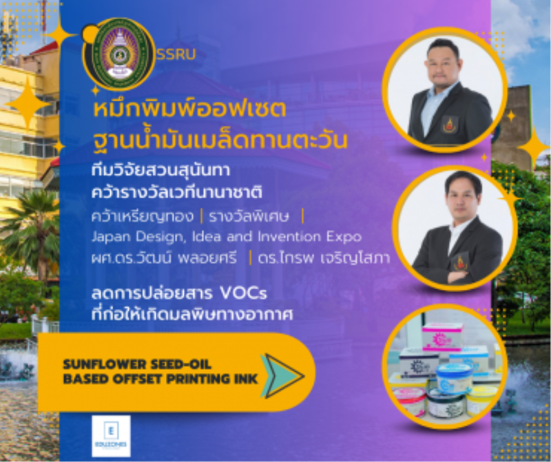 tui sakrapee July 25, 2023 “หมึกพิมพ์ออฟเซตฐานน้ำมันเมล็ดทานตะวัน” ทีมวิจัยสวนสุนันทาคว้ารางวัลเวทีนานาชาติ tui sakrapee July 25, 2023 นักวิจัยมหาวิทยาลัยราชภัฏสวนสุนันทา โดย ผู้ช่วยศาสตราจารย์ ดร.วัฒน์ พลอยศรี และอาจารย์ ดร.ไกรพ เจริญโสภา คณะเทคโนโลยีอุตสาหกรรม นำผลงานวิจัย “หมึกพิมพ์ออฟเซตฐานน้ำมันเมล็ดทานตะวัน” ซึ่งได้รับการคัดเลือกจากสำนักงานการวิจัยแห่งชาติ (วช.) เข้าร่วมประกวดและจัดแสดงผลงาน เมื่อวันที่ 8 กรกฎาคม 2566 ณ Tokyo Ariake Garden Convention Center, Japan กรุงโตเกียว ประเทศญี่ปุ่น ผลงานปรากฏว่าทีมนักวิจัยของมหาวิทยาลัยราชภัฏสวนสุนันทาสามารถคว้ารางวัลเหรียญทองและรางวัลพิเศษ ในเวที “Japan Design, Idea… Continue Reading