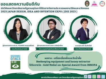 นักวิจัยสวนสุนันทา คว้ารางวัลเหรียญทอง ผลงาน “เครื่องเลี้ยงผึ้งและรีดน้ำผึ้ง” เวทีระดับนานาชาติ ที่กรุงโตเกียว ประเทศญี่ปุ่น tui sakrapee July 13, 2023 นักวิจัยสวนสุนันทา สร้างชื่อคว้ารางวัลเหรียญทอง ผลงาน “เครื่องเลี้ยงผึ้งและรีดน้ำผึ้ง” เวทีระดับนานาชาติ ตอบรับเป้าหมายการพัฒนาอย่างยั่งยืน (SDGs) ผู้ช่วยศาสตราจารย์ ดร.กันยพัชร์ ธนกุลวุฒิโรจน์ คณะศิลปกรรมศาสตร์ ผู้ช่วยศาสตราจารย์มรกต วรชัยรุ่งเรือง คณะมนุษศาสตร์และสังคมศาสตร์ และ อาจารย์ดวงใจ ลิ้มศักดิ์ศรี คณะศิลปกรรมศาสตร์ มหาวิทยาลัยราชภัฏสวนสุนันทา คว้ารางวัลเหรียญทองและรางวัลพิเศษ จากผลงาน “เครื่องเลี้ยงผึ้งและรีดน้ำผึ้ง : Beekeeping equipment and honey extractor” ในงาน “2023 Japan Design, Idea and Invention Expo (JDIE 2023)” ที่กรุงโตเกียว ประเทศญี่ปุ่น เมื่อวันที่ 8… Continue Reading
