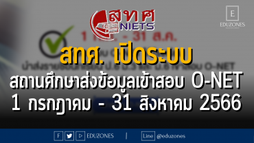 EZ Webmaster July 10, 2023 สทศ. เปิดระบบให้สถานศึกษาส่งข้อมูลนักเรียนเข้าสอบ O-NET ปีการศึกษา 2566 : 1 กรกฎาคม – 31 สิงหาคม 2566 EZ Webmaster July 10, 2023 สทศ. เปิดระบบให้สถานศึกษาส่งข้อมูลนักเรียนเข้าสอบ O-NET ปีการศึกษา 2566 : 1 กรกฎาคม – 31 สิงหาคม 2566 . เข้าสู่ระบบได้ที่ : คลิก Continue Reading