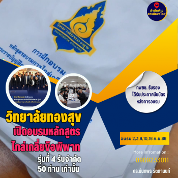 วิทยาลัยทองสุข เปิดอบรมหลักสูตรไกล่เกลี่ยข้อพิพาท รุ่นที่ 4 รับจำกัด 50 ท่านเท่านั้น tui sakrapee July 1, 2023 วิทยาลัยทองสุข เปิดอบรมหลักสูตรไกล่เกลี่ยข้อพิพาท รุ่นที่ 4 รับจำนวนจำกัด 50 ท่านเท่านั้น วิทยาลัยทองสุข เปิดรับสมัครบุคคลทั่วไปที่สนใจเข้ารับการอบรมหลักสูตรอบรมการไกล่เกลี่ยข้อพิพาทตามพระราชบัญญัติการไกล่เกลี่ยข้อพิพาท พ.ศ. 2562 (กพยช. รับรอง และได้รับประกาศนียบัตรหลังการอบรม) รับสมัครตั้งแต่วันนี้เป็นต้นไป เริ่มอบรม 2,3,9,10,16 กันยายน 2566 ค่าใช้จ่าย 6,900-. บาท ชำระโดย ชื่อบัญชี วิทยาลัยทองสุข ธนาคารกรุงไทย 0310545706 https://forms.gle/woVgpWovZttY83nK9 **คุณสมบัติผู้เรียน ต้องเป็นผู้ที่มีอายุไม่ต่ำกว่า 30 ปีบริบูรณ์** สอบถามข้อมูลเพิ่มเติม ดร.นันทพร รัตตานนท์ 0909233011 ติดตามข่าวสาร วิทยาลัยทองสุข Thongsook College Continue Reading