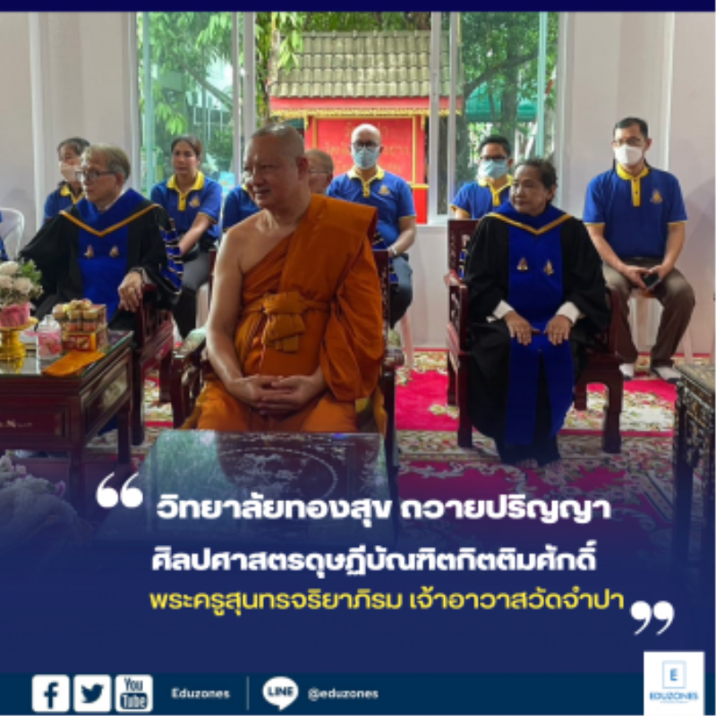 วิทยาลัยทองสุข ถวายปริญญาศิลปศาสตรดุษฏีบัณฑิตกิตติมศักดิ์ พระครูสุนทรจริยาภิรม เจ้าอาวาสวัดจำปา tui sakrapee June 30, 2023 #วิทยาลัยทองสุข #ถวายปริญญาศิลปศาสตรดุษฏีบัณฑิตกิตติมศักดิ์ #พระครูสุนทรจริยาภิรม #เจ้าอาวาสวัดจำปา แขวงบางระมาด เขตตลิ่งชัน กรุงเทพมหานคร เมื่อวันที่ 6 มิถุนายน 2566 เวลา 13.00 น. รองศาสตราจารย์วิรัช สงวนวงค์วาน นายกสภาวิทยาลัยทองสุข ร่วมฉลองงานปริญญาศิลปศาสตรดุษฏีบัณฑิตกิตติมศักดิ์ สาขาวิชาสังคม ศาสนา และวัฒนธรรม แก่พระครูสุนทรจริยาภิรม เจ้าอาวาสวัดจำปา แขวงบางระมาด เขตตลิ่งชัน กรุงเทพมหานคร ซึ่งเป็นพระนักพัฒนา วิทยาลัยทองสุข จึงได้ถวายปริญญาบัตร เมื่อวันที่ 7 มกราคม 2566 โดยมี นายชวน หลีกภัย ประธานรัฐสภา เป็นประธานในพิธี ณ อาคารหอประชุมพุทธมณฑล จังหวัดนครปฐม . Continue Reading