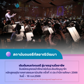 เติมเต็มมืออาชีพ! สถาบันดนตรีกัลยาณิวัฒนา เปิดรับเข้าศึกษาต่อปริญญาโท หลักสูตรดุริยางคศาสตรมหาบัณฑิต tui sakrapee June 26, 2023 สถาบันดนตรีกัลยาณิวัฒนา รับสมัครบุคคลเข้าศึกษาต่อในระดับปริญญาโท หลักสูตรดุริยางคศาสตรมหาบัณฑิต ครั้งที่ 4 ประจําปีการศึกษา 2566 1. คุณสมบัติของผู้สมัคร 1.1 มีวุฒิการศึกษาระดับปริญญาตรีขึ้นไป ในสาขาวิชาดนตรีหรือเกี่ยวข้อง และมีผลการเรียนดี (คะแนน เฉลี่ยไม่ต่ำกว่า 3.00 ในระบบฐานคะแนนเต็ม 4.00) หรือเป็นผู้มีประสบการณ์ด้านดนตรีในระดับสูง เช่น เคยได้รับ รางวัลการประกวด แข่งขัน หรือจัดแสดงผลงานในระดับชาติ นานาชาติ ฯลฯ โดยผู้สมัครต้องส่งแฟ้มสะสมผลงาน (Portfolio) พร้อมทั้งหัวข้อการศึกษาที่สนใจ (Topic Statement) เป็นหลักฐานประกอบการสมัครด้วย 1.2 มีทักษะภาษาอังกฤษในระดับดี โดยมีผลคะแนนสอบภาษาอังกฤษที่เทียบแล้วไม่ต่ํากว่าเกณฑ์ ตามประกาศสถาบันดนตรีกัลยาณิวัฒนา เรื่อง เกณฑ์มาตรฐานการทดสอบภาษาอังกฤษของนักศึกษาระดับบัณฑิตศึกษา ลงวันที่ 21 สิงหาคม พ.ศ.… Continue Reading