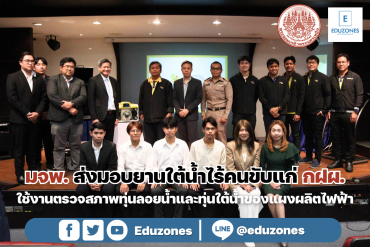 มจพ. มอบยานใต้น้ำไร้คนขับแก่ กฟผ. ใช้งานตรวจสภาพทุ่นลอยน้ำและทุ่นใต้น้ำของแผงผลิตไฟฟ้า EZ Webmaster June 26, 2023 ยานใต้น้ำไร้คนขับเพื่อตรวจสอบแผงผลิตไฟฟ้าลอยน้ำ เป็นทุนวิจัย และพัฒนานวัตกรรมที่การไฟฟ้าฝ่ายผลิตแห่งประเทศไทย (กฟผ.) ว่าจ้างมหาวิทยาลัยเทคโนโลยีพระจอมเกล้าพระนครเหนือ (มจพ.) ดำเนินงานโดยมี รองศาสตราจารย์ ดร.รามิล เกศวรกุล อาจารย์ประจำภาควิชาวิศวกรรมการผลิตและหุ่นยนต์ คณะวิศวกรรมศาสตร์ เป็นหัวหน้าโครงการ โดยมีงบประมาณ 9,987,951.18 บาท การออกแบบ และสร้างยานใต้น้ำที่สามารถตรวจสอบสภาพทุ่นลอยน้ำ และทุ่นใต้น้ำของแผงผลิตไฟฟ้าได้ อีกทั้งยังมีการประยุกต์ใช้เทคโนโลยีการประมวลผลภาพประเภทตัวกรองสัญญาณ เพื่อใช้ในการตรวจสอบ และประเมินความเสียหายเบื้องต้นได้ จากผลการวิจัยพบว่ารูปแบบการวางชุดขับดันแบบตัดขวางทแยงมุมกัน สามารถทำให้ยานเคลื่อนที่ได้อย่างอิสระ อีกทั้งยานใต้น้ำไร้คนขับสามารถสำรวจในน้ำที่มีความลึกไม่น้อยกว่า 25 เมตร ระยะทางในการสำรวจสูงสุดแบบมีสายสัญญาณที่ 250 เมตร และระยะทางในการสำรวจสูงสุดแบบไร้สายสัญญาณที่ 500 เมตร ยานใต้น้ำไร้คนขับ ติดตั้งระบบกำหนดตำแหน่งบนโลก และระบบตรวจจับระยะด้วยเสียงรอบทิศทางแบบเชิงกล สามารถทำการขับเคลื่อนระยะไกล และถ่ายทอดภาพขณะปฏิบัติงานใต้น้ำแบบใช้สายสัญญาณได้โดยมีระบบไฟส่องสว่างใต้น้ำ พร้อมทั้งทดสอบระบบการทำงานแบบไร้สายสัญญาณใต้ของยานใต้น้ำ โดยมีคณะทีมงานวิจัยประกอบด้วย ผู้ช่วยศาสตราจารย์ เจนจิรา … Continue Reading
