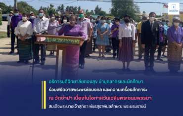 tui sakrapee June 3, 2023 อธิการบดีวิทยาลัยทองสุข นำบุคลากรและนักศึกษาร่วมพิธีถวายพระพรชัยมงคล และถวายเครื่องสักการะ ณ วัดจำปา เนื่องในโอกาสวันเฉลิมพระชนมพรรษา สมเด็จพระนางเจ้าสุทิดา พัชรสุธาพิมลลักษณ พระบรมราชินี tui sakrapee June 3, 2023 ดร.พรจิต อรัณยกานนท์ อธิการบดีวิทยาลัยทองสุข พร้อมด้วย ดร.วิชาญ เหรียญวิไลรัตน์ รองอธิการบดีฝ่ายกิจการนักศึกษา และคณบดีคณะสังคมศาสตร์และศึกษาศาสตร์ นำบุคลากรและนักศึกษาเข้าร่วมในพิธีถวายพระพรชัยมงคล และถวายเครื่องสักการะ พานพุ่มทอง-พุ่มเงิน โดยอธิการบดีวิทยาลัยทองสุขได้รับเกียรติเป็นประธานในพิธี ในวันเสาร์ที่ ๓ มิถุนายน พ.ศ. ๒๕๖๖ เวลา ๐๙.๓๐ น. ณ มณฑลพิธีวัดจําปา แขวงบางระมาด เขตตลิ่งชัน กรุงเทพฯ กิจกรรมดังกล่าวมีผู้เข้าร่วมเป็นจำนวนมาก โดยประชาชนและผู้มีจิตศรัทธาได้ร่วมบริจาคข้าวสารจำนวน 500 ถุงให้กับวัดจำปา เพื่อถวายเป็นพระราชกุศล ซึ่งทางวัดได้นำมาแจกจ่ายให้กับผู้มาร่วมงานในวันนี้อย่างทั่วถึง ทั้งนี้วัดจําปา… Continue Reading