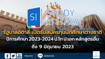 รัฐบาลอิตาลี เปิดรับสมัครทุนการศึกษานักศึกษาต่างชาติ ปีการศึกษา 2023-2024 สำหรับ ป.โท และป.เอก และหลักสูตรอื่น ๆ EZ Webmaster May 30, 2023 กระทรวงการต่างประเทศและความร่วมมือระหว่างประเทศ (MAECI) ได้ประกาศรับสมัครนักศึกษาต่างชาติที่สนใจเรียนรู้ภาษาอิตาเลียนและวัฒนธรรมของประเทศอิตาลี โดยให้ทุนการศึกษาจากรัฐบาลอิตาลี โครงการนี้เป็นส่วนหนึ่งของการส่งเสริมความร่วมมือระหว่างประเทศในด้านวัฒนธรรม วิทยาศาสตร์และเทคโนโลยี รวมถึงการเรียนรู้ภาษาอิตาเลียนและระบบเศรษฐกิจของประเทศอิตาลีเพื่อสร้างสัมพันธภาพทางวัฒนธรรมและการพัฒนาที่ยั่งยืนระหว่างประเทศ กำหนดปิดรับสมัครทุนทางออนไลน์: 9 มิถุนายน 2023 เวลา 14.00 น. (CET) หลักสูตรและระยะเวลารับทุน โครงการทุนการศึกษานี้มีหลักสูตรและระยะเวลาที่หลากหลายให้นักศึกษาเลือกสอบเลือกศึกษาตามความสนใจและความต้องการของตนเอง ดังนี้: หลักสูตรปริญญาโท (Master’s Degree): ระยะเวลา 6-9 เดือน หลักสูตรปริญญาเอก (PhD Program): ระยะเวลา 6-9 เดือน หลักสูตรอบรมด้านศิลปะ ดนตรี และการเต้น (Courses of Higher Education in Arts, Music and Dance;… Continue Reading