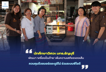 นักศึกษาวิศวะ มทร.ธัญบุรี พัฒนา ‘เครื่องปั่นด้าย’ เพิ่มความเสถียรของเส้น ควบคุมด้วยบอร์ดอะดูอีโน่ ร่วมระบบพีไอดี tui sakrapee May 11, 2023 นักศึกษาภาควิชาวิศวกรรมอิเล็กทรอนิกส์และโทรคมนาคม คณะวิศวกรรมศาสตร์ มทร.ธัญบุรี ออกแบบและพัฒนาเครื่องปั่นด้ายอัตโนมัติ ควบคุมด้วยบอร์ดอะดูอีโน่ (Arduino) ร่วมกับระบบพีไอดี (PID) เพื่อเพิ่มความเสถียรของเส้นด้าย และทุ่นแรงคน “การปั่นด้าย” เป็นวิธีการอย่างหนึ่ง โดยนำเส้นใยที่ทำให้ฟูตัวแล้ว มาดึงให้ยืดเป็นเส้น พร้อมกับบิดเกลียวเพื่อให้เส้นใยเกาะตัวเป็นเส้นยาวติดต่อกัน หรืออธิบายอย่าง่าย ๆ ว่าเป็นการปั่นเส้นใยจนเกิดเป็นเส้นด้ายนั่นเอง ปัจจุบันสภาพเครื่องปั่นด้ายบางแห่ง บางพื้นที่ยังเป็นแบบดั้งเดิม ที่อาศัยภูมิปัญญาและการสืบทอดต่อกันมา โดยอุปกรณ์ที่ทำเครื่องปั่นด้ายจะเป็นวัสดุที่มีในชุมชน และการปั่นด้ายแต่ละครั้งใช้เวลาค่อนข้างมากในการปั่น จึงมีการใช้เครื่องจักรในการปั่นด้ายเข้ามาทุ่นแรง แต่เนื่องด้วยเครื่องปั่นด้ายมีขนาดใหญ่ ทั้งยังมีราคาสูง และมีค่าใช้จ่ายในการรักษาซ่อมบำรุงที่มากพอสมควร ปัจจุบันเครื่องปั่นด้ายได้มีการพัฒนาด้านเทคโนโลยีของการปั่นด้ายที่เร็วขึ้น และช่วยในการทุ่นแรงได้มากขึ้น โดยมีการแข่งขันทางด้านเวลาที่ใช้ในการปั่นด้ายให้เร็วมากขึ้นและตัวเครื่องที่มีขนาดเล็กลงกว่าเดิม นอกจากนี้ยังมีการพัฒนาระบบควบคุมความเร็วในการปั่นด้ายอย่างสม่ำเสมอและมีความเสถียรในการควบคุมปริมาณความยาวของเส้นด้ายให้ปั่นได้ตามจำนวนรอบที่ต้องการ รวมถึงช่วยแก้ไขปัญหาในเรื่องการปั่นด้ายให้เร็วขึ้นและทุ่นแรง 3 นักศึกษา นำโดย “เชษฐ” นายเชษฐบุตร ปราบพาล “ตอง” นางสาวบุณญิสา มาลิตร์ และ “นัฐ”… Continue Reading