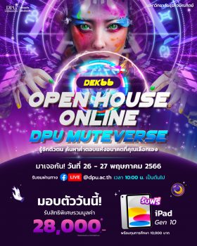 EZ Webmaster May 10, 2023 ม.ธุรกิจบัณฑิตย์ ชวนเด็ก ม.ปลาย ค้นหาคำตอบเส้นทางอาชีพสร้างตัวแห่งอนาคต ในงาน DPU OPEN HOUSE ONLINE 26-27 พฤษภาคมนี้ EZ Webmaster May 10, 2023 มหาวิทยาลัยธุรกิจบัณฑิตย์ เปิดอาณาจักรสุดตระการตาอีกครั้ง เพื่อต้อนรับน้อง ๆ ม.ปลาย มาค้นหาคำตอบแห่งอนาคต ในงาน “DPU OPEN HOUSE ONLINE” ครั้งนี้เล่นใหญ่กว่าเดิม มาในธีมเริ่ด ๆ ชวนตะลึง “DPU MUTEVERSE (ดีพียู มูเตเวิร์ส)” พร้อมให้น้อง ๆ ได้เข้ามาสัมผัสกับหลักสูตรทันสมัยจาก 5 วิทยาลัย 6 คณะ ที่โดดเด่นทั้ง Business Skills และ Future Skills นอกจากนี้ ยังมีรุ่นพี่ดาวเด่นที่ประสบความสำเร็จในวงการต่าง ๆ มาแชร์ประสบการณ์ในโลกการทำงานจริงให้ฟังแบบเป็นกันเองสุด ๆ บอกเลยว่าพลาดไม่ได้ เลือกอนาคตด้วยตัวเองในงาน DPU OPEN HOUSE ONLINE วันศุกร์และวันเสาร์ 26-27 พฤษภาคม 2566 เวลา 10.00 น. เป็นต้นไป ทาง Facebook Live… Continue Reading