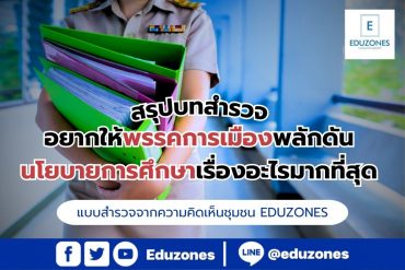 EZ Webmaster May 5, 2023 สรุปบทสำรวจ นโยบายการศึกษาเรื่องที่อยากให้พรรคการเมืองพลักดัน ใน #เลือกตั้ง2566 แบบสำรวจจากความคิดเห็นชุมชน EDUZONES EZ Webmaster May 5, 2023 นับถอยหลัง วันเลือกตั้งสมาชิกสภาผู้แทนราษฎร ที่จะมาถึงในวันที่ 14 พฤษภาคม 2566 แต่ละพรรคได้มีนโยบายด้านต่าง ๆ ที่ใช้ในการหาเสียงรวมถึงนโยบายด้านการศึกษา Eduzones ได้มีการสำรวจว่า “อยากให้พรรคการเมือง พลักดันนโยบายการศึกษาเรื่องอะไรมากที่สุด ?” จากผลสำรวจผ่านเฟซบุ๊กแฟนเพจ Eduzones , Wiriyah Eduzones และ ครู Eduzones โดยเก็บข้อมูลภายในวันที่ 3 พฤษภาคม 2566 นโยบายการศึกษาเรื่องที่อยากให้พรรคการเมืองพลักดัน แบ่งออกเป็น 4 ด้าน ได้แก่… Continue Reading