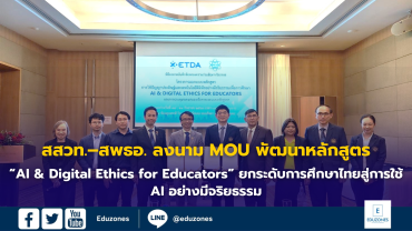 สสวท.–สพธอ. ลงนาม MOU พัฒนาหลักสูตร “AI & Digital Ethics for Educators” ยกระดับการศึกษาไทยสู่การใช้ AI อย่างมีจริยธรรม EZ Webmaster September 22, 2025 สสวท.–สพธอ. ลงนาม MOU พัฒนาหลักสูตร “AI & Digital Ethics for Educators” ยกระดับการศึกษาไทยสู่การใช้ AI อย่างมีจริยธรรม วันที่ 19 กันยายน 2568 / สถาบันส่งเสริมการสอนวิทยาศาสตร์และเทคโนโลยี (สสวท.) โดย รองศาสตราจารย์ ดร.ธีระเดช เจียรสุขสกุล ผู้อำนวยการ สสวท. และ สำนักงานพัฒนาธุรกรรมทางอิเล็กทรอนิกส์ (สพธอ.) หรือ ETDA โดย ดร.ชัยชนะ มิตรพันธ์ ผู้อำนวยการ สพธอ. ได้ร่วมลงนามบันทึกข้อตกลงความร่วมมือทางวิชาการ “โครงการออกแบบหลักสูตรการใช้ปัญญาประดิษฐ์และเทคโนโลยีดิจิทัลอย่างมีจริยธรรมเพื่อการศึกษา (AI & Digital Ethics… Continue Reading