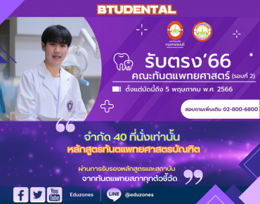 เปิดจักรวาล “สายพยาบาล” ✨ ชวนน้อง ม.ปลาย ร่วมงานใหญ่แห่งปี จากสถาบันการพยาบาลศรีสวรินทิรา EZ WebmasterApril 19, 2026 🏥 เปิดจักรวาล “สายพยาบาล” ✨ ชวนน้อง ม.ปลาย ร่วมงานใหญ่แห่งปี จากสถาบันการพยาบาลศรีสวรินทิรา ใครสนใจสายสุขภาพ ห้ามพลาด! ✨สถาบันการพยาบาลศรีสวรินทิรา สภากาชาดไทย ขอเชิญชวนน้อง ๆ ระดับมัธยมปลาย และประชาชนทั่วไป เข้าร่วมกิจกรรมเปิดบ้านสุดยิ่งใหญ่ ภายใต้ธีม… ม.เกริก ผนึกกำลัง 14 สถาบันอุดมศึกษาชั้นนำ ร่วมลงนาม MOU ยกระดับการพัฒนาสังคมและงานวิจัยระดับชาติ tui sakrapeeApril 15, 2026 มหาวิทยาลัยเกริก ผนึกกำลัง 14 สถาบันอุดมศึกษาชั้นนำ ร่วมลงนาม MOU ยกระดับการพัฒนาสังคมและงานวิจัยระดับชาติ ณ สถาบันบัณฑิตพัฒนบริหารศาสตร์ (NIDA) วันที่ 9 เมษายน 2569 ณ สถาบันบัณฑิตพัฒนบริหารศาสตร์ (NIDA) มหาวิทยาลัยเกริก… ราชมงคลพระนคร ร่วมสนับสนุนกิจกรรมในงานกระตุ้นเศรษฐกิจรัชดา-ประชาชื่น สำนักงานเขตบางซื่อ tui sakrapeeApril 9, 2026 ดร.ณัฐวรพล รัชสิริวัชรบุล อธิการบดีมหาวิทยาลัยเทคโนโลยีราชมงคลพระนคร มอบหมายให้ ผศ.ศรัทธา แข่งเพ็ญแข ผู้ช่วยอธิการบดี เข้าร่วมประชุมและประสานงาน โดยมีผศ.ดร.ยุทธภูมิ สุวรรณเวช รองอธิการบดี เป็นผู้กำกับดูแลในการสนับสนุน จัดกิจกรรมในงานกระตุ้นเศรษฐกิจรัชดา-ประชาชื่น โดยสำนักงานเขตบางซื่อ ซึ่งจัดในพื้นที่บริเวณสวนสุขภาพแยกประชานุกูล ระหว่างวันที่ 19-27 มี.ค.2569… มหาวิทยาลัยกรุงเทพ จับมือ Omnicom Media Thailand ประกาศก้าวสู่ Creative Ecosystem ระดับสากล เปิดหลักสูตร Global Creator and Influencer Branding รับโลกคอนเทนต์ยุค AI tui sakrapeeApril 8, 2026 มหาวิทยาลัยกรุงเทพ ตอกย้ำการเป็นมหาวิทยาลัยสร้างสรรค์ (Creative University) ผนึกกำลังกับ Omnicom Media Thailand พันธมิตรเอเจนซี่สื่อชั้นนำระดับโลก ลงนามความร่วมมือ (MoU) ยกระดับระบบนิเวศการเรียนรู้สู่ระดับสากล พร้อมเปิดตัวหลักสูตรสุดล้ำ “Global Creator and Influencer Branding”… Search for: Search Classic Blog คณะทันตแพทยศาสตร์ ม.กรุงเทพธนบุรี รับตรง (รอบ2) หลักสูตรทันตแพทยศาสตรบัณฑิต tui sakrapee April 24, 2023 คณะทันตแพทยศาสตร์ มหาวิทยาลัยกรุงเทพธนบุรี เปิดรับตรง (รอบ 2) หลักสูตรทันตแพทยศาสตรบัณฑิต ปีการศึกษา 2566 การรับสมัคร ตั้งแต่วันนี้ – 5 พ.ค. 66 จำนวนการรับสมัคร รับนักศึกษาจํากัด 40 ที่นั่งเท่านั้น คุณสมบัติ – เป็นผู้สําเร็จการศึกษาระดับชั้น ม.6 หรือเทียบเท่า สายวิทย์-คณิต เกรดเฉลี่ยสะสม ไม่ต่ำกว่า 2.75 – เป็นผู้สําเร็จการศึกษาปริญญาตรี (สายวิทยาศาสตร์) ผลการเรียนไม่ต่ำกว่า 2.50 หลักสูตรคณะทันตแพทยศาสตร์ มหาวิทยาลัยกรุงเทพธนบุรีผ่านการรับรองหลักสูตรและสถาบันจากทันตแพทยสภาทุกตัวชี้วัด ข้อมูลเพิ่มเติม โทร: 02-800-6800 admission.bkkthon.ac.th Continue Reading มหาวิทยาลัยราชภัฏสวนสุนันทา จัดพิธีถ