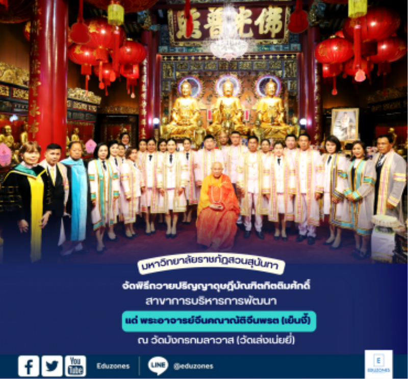 tui sakrapee April 24, 2023 มหาวิทยาลัยราชภัฏสวนสุนันทา จัดพิธีถวายปริญญาดุษฎีบัณฑิตกิตติมศักดิ์ สาขาการบริหารการพัฒนา แด่ พระอาจารย์จีนคณาณัติจีนพรต (เย็นงี้) ณ วัดมังกรกมลาวาส (วัดเล่งเน่ยยี่) tui sakrapee April 24, 2023 พิธีถวายปริญญาดุษฎีบัณฑิตกิตติมศักดิ์ สาขาการบริหารการพัฒนา แด่ พระอาจารย์จีนคณาณัติจีนพรต (เย็นงี้) ณ วัดมังกรกมลาวาส (วัดเล่งเน่ยยี่) วันจันทร์ที่ 24 เมษายน 2566 มหาวิทยาลัยราชภัฏสวนสุนันทา จัดพิธีถวายปริญญาบัตรดุษฎีบัณฑิตกิตติมศักดิ์ สาขาการบริหารการพัฒนา โดย รองศาสตราจารย์ ดร.ฤๅเดช เกิดวิชัย นายกสภามหาวิทยาลัยราชภัฏสวนสุนันทา ถวายครุยวิทยฐานะ และกล่าวประกาศเกียรติคุณเชิดชูเกียรติ แด่ พระอาจารย์จีนคณาณัติจีนพรต (เย็นงี้) พร้อมด้วย รองศาสตราจารย์ ดร.ชุติกาญจน์ ศรีวิบูลย์ อธิการบดี ได้กล่าวแสดงมุทิตาสักการะก่อนจะเริ่มพิธีพระราชทานปริญญาบัตร โดย… Continue Reading