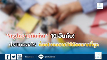 EZ Webmaster April 24, 2023 สรุปความคิดเห็น 10 อันดับ! ประเทศอะไร…ที่คนไทยอยากไปเรียนมากที่สุด EZ Webmaster April 24, 2023 จัดอันดับ! ความคิดเห็น ประเทศอะไร…ที่คนไทยอยากไปเรียนมากที่สุด จากชุมชนชาว Eduzones สวัสดีค่ะทุกคน วันนี้ชุมชน Eduzones ของเรา ได้รวบรวมผลสำรวจความคิดเห็นประเด็น ประเทศอะไร…ที่คนไทยอยากไปเรียนมากที่สุด? จาก โพล์ลการสำรวจความคิดเห็นด้านล่างนี้ https://www.facebook.com/interscholarship/posts/pfbid02on1d5jCx3N5E9uCkMLKMwWuDrHz1dZqdW2edy75RDnpRfiMDf3QTtX1sev5fdxSzl โดยเราได้รวบรวมผลจากการแสดงความคิดเห็นและได้จัดอันดับหมวดหมู่ออกเป็น 10 อันดับ ดังนี้ อันดับที่ 1 ประเทศสหรัฐอเมริกา ปฏิเสธไม่ได้ว่าประเทศสหรัฐอเมริกาเป็นตัวเลือกแรกที่ขึ้นมาเมื่อคนต้องการไปศึกษาต่อที่ต่างประเทศ เพราะการศึกษาที่มีคุณภาพ และ เป็นที่นิยมสูงมากในหมู่นักเรียน ด้วยวิธีการสอน ที่เป็นนวัตกรรมใหม่ เช่น การศึกษาสาย STEM คุณภาพที่มีอิสระ… Continue Reading