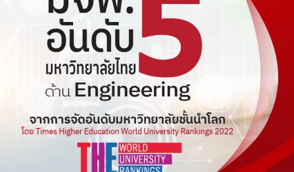 นักศึกษา มจพ.ได้รับการจัดให้อยู่ในอันดับที่ 5มหาวิทยาลัยไทยด้าน Engineering EZ Webmaster October 29, 2021 มหาวิทยาลัยเทคโนโลยีพระจอมเกล้าพระนครเหนือ (มจพ.) ได้รับการจัดให้อยู่ในอันดับที่ 5 ปังระดับประเทศ สาขา Engineering ในการจัดอันดับโลก THE 2022 จากการรายงาน Times Higher Education หรือ THE…