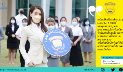 Blogนักเรียน พร้อมแล้ว! 1 พ.ย.64 “สาธิตกรุงเทพธนบุรี” ฉีดครบ มั่นใจ ปลอดภัย เปิดสอน ONSITE เต็มรูปแบบ tui sakrapee October 29, 2021 “ครูเอิร์น” จิรวรรณ ชัยรุ่งเรือง ผู้อํานวยการบริหารโรงเรียนสาธิตกรุงเทพธนบุรี เผยถึงความพร้อมในการเปิดเรียนแบบเต็มรูปแบบ ONSITE ตั้งแต่วันที่ 1 พฤศจิกายนนี้ โดยทางคณะผู้บริหาร คุณครู และบุคลากรของโรงเรียนสาธิตกรุงเทพธนบุรี ได้รับการฉีดวัคซีนครบโดสแล้ว 100% ตอกย้ำความมั่นใจให้นักเรียนและผู้ปกครอง ว่าเรา…