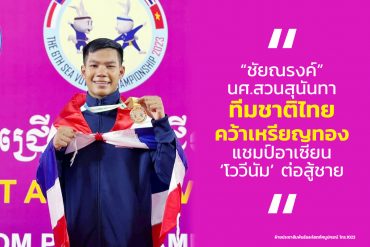 tui sakrapee March 31, 2023 “ชัยณรงค์” น.ศ.สวนสุนันทา นักต่อสู้ทีมชาติไทย คว้าเหรียญทองศึก ‘โววีนัม’ ชิงแชมป์อาเซียน ที่ประเทศกัมพูชา tui sakrapee March 31, 2023 นายชัยณรงค์ ยาวะโนภาส (ก้าว) นักศึกษาชั้นปีที่ 3 สาขาวิชาวิทยาศาสตร์การกีฬาและสุขภาพ คณะวิทยาศาสตร์และเทคโนโลยี มหาวิทยาลัยราชภัฏสวนสุนันทา ลงชิงชัยในนามทีมชาติไทย คว้าเหรียญทอง จากการเข้าร่วมการแข่งขันกีฬาโววีนัม ประเภทต่อสู้ชาย รุ่นน้ำหนัก 65 กิโลกรัม ระดับอาเซียน ในรายการ THE 6TH SOUTHEAST ASIAN VOVINAM CHAMPIONSHIP PHNOM PENH CAMBODIA ณ เมือง PHNOM PENH ประเทศกัมพูชา ทำให้ประเทศไทยขึ้นแท่นอยู่อันดับ… Continue Reading
