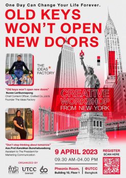 ม.หอการค้าไทย จัดสัมมนาเชิงปฏิบัติการ “Old keys won’t open new doors เปิดประตูใหม่ๆ ในการต่อยอดอนาคต” EZ Webmaster March 21, 2023 ไม่มีตั๋ว First Class ให้เธอบิน ไม่มีรถ Super Car ให้เธอนั่ง ไม่มีโซฟา Boundery ให้เธอพิง ไม่มี The Strand Thong-Lor ให้เธอนอน … อย่าเสียใจไปนะคนดี UTCC มี workshop ดีๆ ให้คุณเรียน เพื่อไปต่อยอด ให้คุณมี Everything มอบให้เธอ “เปิดประตูใหม่ๆ ในการต่อยอดอนาคต “ เราเชื่อเสมอว่า การศึกษา ไม่ใช่ธุรกิจ เราจึงต้องมีกิจกรรมเสริมหลักสูตรพื้นฐาน นอกจากเรียนในหลักสูตรในตำราแล้วสิ่งสำคัญสุดสำหรับโลกยุคนี้คือ เสริมความรู้นอกตำราด้วยประสบการณ์ที่ลงมือทำจริง จากปริญญาชีวิตของจริง ท่ามกลางความแรงของโลกธุรกิจที่หมุนเร็วกว่า ทฤษฎีในตำราเพื่อให้ลูกศิษย์ทันโลก มีไอเดียนอกกรอบ กิจกรรมนี้จึงเกิดขึ้น และยังเปิดโอกาสให้ทุกคนที่สนใจเข้ามานั่งเรียนได้โดยไม่มีค่าใช้จ่ายใดๆทั้งสิ้น… Continue Reading