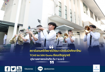 สถาบันดนตรีกัลยาณิวัฒนา เปิดรับสมัครนักศึกษาใหม่ TCAS’66 รอบ Quota เรียนปริญญาตรี ดุริยางคศาสตรบัณฑิต ถึง 7 เม.ย.นี้ tui sakrapee March 18, 2023 สถาบันดนตรีกัลยาณิวัฒนา เปิดรับสมัครนักศึกษาใหม่ TCAS’66 รอบ Quota หลักสูตรปริญญาตรี ดุริยางคศาสตรบัณฑิต เริ่มสมัครได้ตั้งแต่วันนี้ถึงวันที่ 7 เมษายน 2566 คุณสมบัติและความรู้ทั่วไป เกรดเฉลี่ย GPAX 4 ภาคเรียนไม่น้อยกว่า 2.00 เป็นผู้สำเร็จการศึกษาหรือคาดว่าจะสำเร็จการศึกษาระดับมัธยมศึกษาปีที่ 6 หรือเทียบเท่าขึ้นไป หากสอบเทียบวุฒิมัธยมศึกษาตอนปลายระบบอเมริกัน US High School Equivalency Diploma (GED) จะต้องมีผลการสอบแต่ล่ะรายวิชาไม่น้อยกว่า 145 คะแนนขึ้นไป และมีผลคะแนนรวมไม่น้อยกว่า 640 คะแนน ไม่เป็นโรคที่เป็นอุปสรรคต่อการศึกษา มีคุณสมบัติครบถ้วนตามระเบียบข้อบังคับของสถาบันดนตรีกัลยาณิวัฒนา มีความสามารถทางด้านดนตรี ในเรื่องของการปฏิบัติเครื่องมือเอก ความรู้และเข้าใจในทฤษฎีดนตรีและประวัติดนตรีตะวันตก และมีโสตทักษะในระดับที่เหมาะสม มีความใฝ่รู้ในด้านการศึกษาดนตรี สนใจกับการเปลี่ยนแปลงในโลกดนตรีปัจจุบันและมีความเข้าใจบทบาทของดนตรีที่มีต่อสังคมไทย อาเซียน… Continue Reading