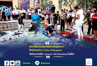 tui sakrapee March 15, 2023 คณะศิลปกรรมศาสตร์ สวนสุนันทา จัดนิทรรศการ Color of Bangkok ศิลปินระดับโลก “Jonone” ร่วม Workshop ใกล้ชิด tui sakrapee March 15, 2023 #คณะศิลปกรรมศาสตร์ มหาวิทยาลัยราชภัฏสวนสุนันทา จัดกิจกรรมครั้งแรกในเมืองไทย กับศิลปินที่มีชื่อเสียงระดับโลก “Jonone” ที่มา Workshop แบบใกล้ชิด กิจกรรมครั้งนี้ #Jonone ศิลปินชาวอเมริกัน ได้มาพูดคุยเล่าประสบการณ์ และได้ลงมือวาดลวดลายสีสันบนพื้นบริเวณหน้าลานคณะศิลปกรรมศาสตร์ร่วมกับนักศึกษาอย่างเป็นกันเอง พร้อมเปิดนิทรรศการ ‘Color of Bangkok’ ณ คณะศิลปกรรมศาสตร์ มหาวิทยาลัยราชภัฏสวนสุนันทา ด้วยความประทับใจ . ******************* ฝ่ายประชาสัมพันธ์และโสตทัศนูปกรณ์ กองกลาง สำนักงานอธิการบดี www.ssru.ac.th IG : ssru_official Line: @482vxgab Twitter… Continue Reading