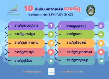 Webometrics 2023 จัด10 อันดับม.ราชภัฏ “สวนสุนันทา” ครองที่ 1 ยาวนาน 17 สมัย พร้อมก้าวสู่อันดับ 15 ของประเทศ tui sakrapee February 5, 2023 “สวนสุนันทา” ยังยืนตำแหน่งแชมป์ราชภัฏยาวนาน 17 สมัย “มทร.อีสาน” ครองที่ 1 ราชมงคล ด้านม.รังสิต ยังที่ 1 ม.เอกชนอีกครั้ง ส่วนที่ 1 ของประเทศไทยยังเป็น “จุฬาฯ” ยังครองไว้ได้อีกสมัย จากอันดับ Webometrics Ranking Universities: January 2023 Edition 2023.0.beta ………………………………………………………………………………………… Cybermetrics Lab แห่งสภาวิจัย (CSIC) ประเทศสเปน ได้ประกาศผลการจัดอันดับมหาวิทยาลัยทั่วโลกประจำเดือนมกราคม 2023 แล้ว ในเวอร์ชั่น Universities: January 2023 Edition 2023.0.beta ซึ่งอาจจะมีการเปลี่ยนแปลงอีกครั้งหนึ่ง… Continue Reading