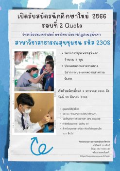 หลักสูตรสาธารณสุขศาสตรบัณฑิต สาขาวิชาสาธารณสุขชุมชน รอบ 2 (Quota) TCAS66 EZ Webmaster February 3, 2023 ทุนเรียนฟรี จำนวน 2 ทุน #เปิดรับสมัครนักศึกษาระดับปริญญาตรี หลักสูตรสาธารณสุขศาสตรบัณฑิต สาขาวิชาสาธารณสุขชุมชน รหัส 2308 รอบ 2 (Quota) TCAS66 สาขาวิชายอดฮิตอันดับ 1 ของวิทยาลัย – โครงการทุนเพชรสุนันทา จำนวน 2 ทุน – ประเภทความสามารถทางวิชาการ/ความสามารถพิเศษ เริ่มรับสมัคร 6 มกราคม – 30 มีนาคม 2566 สมัครผ่านเว็บไซต์ : https://admission.ssru.ac.th/login ติดตามข้อมูลข่าวสารได้ที่ เพจ : สาขาวิชาสาธารณสุขชุมชน สวนสุนันทา หรือต้องการสอบถามเพิ่มเติม INBOX แชทเพจ ติดต่อสอบถามเพิ่มเติม… Continue Reading