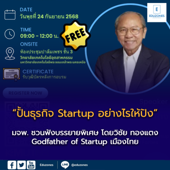 มจพ. ชวนฟังบรรยายพิเศษ “ปั้นธุรกิจ Startup อย่างไรให้ปัง” โดยวิชัย ทองแตง Godfather of Startup เมืองไทย EZ Webmaster September 17, 2025 มจพ. ชวนฟังบรรยายพิเศษ “ปั้นธุรกิจ Startup อย่างไรให้ปัง” โดยวิชัย ทองแตง Godfather of Startup เมืองไทย วิทยาลัยเทคโนโลยีอุตสาหกรรม มหาวิทยาลัยเทคโนโลยีพระจอมเกล้าพระนครเหนือ เตรียมจัดสัมมนาพิเศษ “ปั้นธุรกิจ Startup อย่างไรให้ปังในยุคเทคโนโลยีและนวัตกรรมดิจิทัล” ในวันพุธที่ 24 กันยายน 2568 เวลา 09.00–12.00 น. ณ ห้องประชุมปาล์มเพชร ชั้น 3 อาคาร 63 โดยได้รับเกียรติจาก คุณวิชัย ทองแตง ผู้ได้รับสมญานาม “The Godfather of Startup ประเทศไทย” มาร่วมถ่ายทอดประสบการณ์ตรง การบรรยายครั้งนี้นับเป็นโอกาสสำคัญสำหรับนักศึกษา ผู้ประกอบการรุ่นใหม่… Continue Reading