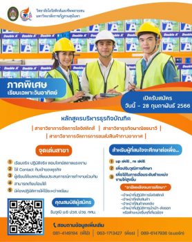 tui sakrapee January 17, 2023 โลจิสติกส์ (ภาคพิเศษ) สวนสุนันทา เปิดรับนักศึกษาใหม่ภาคเรียนที่ 1 ปีการศึกษา 2566 เรียนวันอาทิตย์วันเดียว tui sakrapee January 17, 2023 สมัครเรียน ภาคเรียนที่ 1 ปีการศึกษา 2566 โลจิสติกส์ (ภาคพิเศษ) กับสวนสุนันทา …..เรียนวันอาทิตย์วันเดียว….. เลือกเรียนได้ทั้ง “กรุงเทพฯ” หรือ “นครปฐม” อยากเรียนสาขาไหนเลือกเลย… ห้องเรียน “กรุงเทพฯ” สาขาวิชาการจัดการโลจิสติกส์ สาขาวิชาธุรกิจพาณิชยนาวี สาขาวิชาการจัดการการขนส่งสินค้าทางอากาศ ห้องเรียน “นครปฐม” สาขาวิชาการจัดการโลจิสติกส์ เรียนกับเรา…ได้อะไร ??? เรียนจริง ปฏิบัติจริง ตอบโจทย์ตลาดแรงงาน ได้ Contact กับเจ้าของธุรกิจ ผู้เรียนได้เเลกเปลี่ยนประสบการณ์การทำงานร่วมกัน สามารถเทียบโอนหน่วยกิตได้… Continue Reading