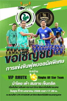 มทร.กรุงเทพ ฉลองครบรอบ 18 ปี จัดแข่งขันฟุตบอลนัดพิเศษ “VIP RMUTK” VS “Singha All Star” tui sakrapee January 17, 2023 มหาวิทยาลัยเทคโนโลยีราชมงคลกรุงเทพ (มทร.กรุงเทพ) จัดแข่งขันฟุตบอลนัดพิเศษระหว่าง “VIP RMUTK นำโดย รศ.ดร.พิชัย จันทร์มณี อธิการบดี” VS “Singha All Star นำโดย เต๋า สมชาย เข็มกลัด” เพื่อเฉลิมฉลองในโอกาสครบรอบ 18 ปี มหาวิทยาลัยเทคโนโลยีราชมงคล (มทร.) 18 มกราคม 2566 และกระชับความสัมพันธ์ระหว่างบุคลากร ศิษย์เก่า นักศึกษา และเครือข่ายมหาวิทยาลัยเทคโนโลยีราชมงคล ณ สนามกีฬา UTK Stadium มหาวิทยาลัยเทคโนโลยีราชมงคลกรุงเทพ รศ.ดร.พิชัย จันทร์มณี อธิการบดี มหาวิทยาลัยเทคโนโลยีราชมงคลกรุงเทพ และประธานจัดการแข่งขันฯ กล่าวว่า 18 มกราคม… Continue Reading