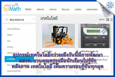 อุปกรณ์เทคโนโลยีกว่าจะถึงวันนี้มีการพัฒนา สสวท. ชวนคุณครูจูงมือนักเรียนไปรู้จัก คลังภาพ เทคโนโลยี เพิ่มความรอบรู้ทันทุกยุค EZ Webmaster January 16, 2023 วันเด็กใฝ่เรียนรู้ วันครูผู้ให้ปัญญา ไม่ว่าวันไหน ๆ ก็พัฒนาความรอบรู้กันได้ทันทุกยุค สถาบันส่งเสริมการสอนวิทยาศาสตร์และเทคโนโลยี (สสวท.) ชวนคุณครูจูงมือนักเรียนไปทำความรู้จักกับ คลังภาพ เทคโนโลยี ที่เยาวชนยุคนี้แม้อาจไม่ทันได้คุ้นเคยแต่ก็ไม่ควรมองข้ามเทคโนโลยีในยุคที่ผ่านมา ไม่ว่าจะเป็น แผ่นบันทึกหรือ Floppy Disk เครื่องสำเนาแผ่น CD DVD โทรศัพท์มือถือ โน๊ตบุ๊ก ไปจนถึง โดรน (Drone) หรือ อากาศยานไร้คนขับซึ่งกำลังมีบทบาทเด่นต่อการดำเนินชีวิตในสังคม อาชีพ และแทบทุกวงการ คลิกไปเติมความรู้กันได้ที่ คลังความรู้ SciMath สสวท. คลังภาพ เทคโนโลยี https://www.scimath.org/image–technology Continue Reading