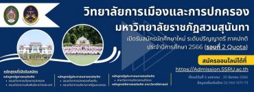 วิทยาลัยการเมืองและการปกครองเปิดรับสมัครนักศึกษาใหม่ ระดับปริญญาตรี ภาคปกติ ประจำปีการศึกษา 2566 (รอบที่ 2 Quota) EZ Webmaster January 11, 2023 วิทยาลัยการเมืองและการปกครองเปิดรับสมัครนักศึกษาใหม่ ระดับปริญญาตรี ภาคปกติ ประจำปีการศึกษา 2566 (รอบที่ 2 Quota) หลักสูตรที่เปิดรับสมัคร 1. หลักสูตรรัฐศาสตรบัณฑิต สาขารัฐศาสตร์ 1.1 แขนงวิชาการเมืองการปกครอง 1.2 แขนงวิชาความสัมพันธ์ระหว่างประเทศ 2. หลักสูตรรัฐประศาสนศาสตรบัณฑิต สาขาวิชารัฐประศาสนศาสตร์ 2.1 แขนงวิชาการปกครองท้องถิ่น 2.2 แขนงวิชาการบริหารภาครัฐและเอกชน 3. หลักสูตรนิติศาสตรบัณฑิต 4. หลักสูตรรัฐประศาสนศาสตรบัณฑิต สาขาวิชาการบริหารงานตำรวจ ** เลือกห้องเรียนได้ทุกหลักสูตร 1. ห้องเรียนกรุงเทพมหานคร 2. ห้องเรียนวิทยาเขตนครปฐม ศึกษาข้อมูลเพิ่มเติมและสมัครเรียนได้ที่ เว็บไซต์ www.cpg.ssru.ac.th วิทยาลัยการเมืองและการปกครอง มหาวิทยาลัยราชภัฏสวนสุนันทา เลขที่ 1 ถนนอู่ทองนอก… Continue Reading