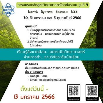 ราชมงคลพระนคร ร่วมสนับสนุนกิจกรรมในงานกระตุ้นเศรษฐกิจรัชดา-ประชาชื่น สำนักงานเขตบางซื่อ tui sakrapeeApril 9, 2026 ดร.ณัฐวรพล รัชสิริวัชรบุล อธิการบดีมหาวิทยาลัยเทคโนโลยีราชมงคลพระนคร มอบหมายให้ ผศ.ศรัทธา แข่งเพ็ญแข ผู้ช่วยอธิการบดี เข้าร่วมประชุมและประสานงาน โดยมีผศ.ดร.ยุทธภูมิ สุวรรณเวช รองอธิการบดี เป็นผู้กำกับดูแลในการสนับสนุน จัดกิจกรรมในงานกระตุ้นเศรษฐกิจรัชดา-ประชาชื่น โดยสำนักงานเขตบางซื่อ ซึ่งจัดในพื้นที่บริเวณสวนสุขภาพแยกประชานุกูล ระหว่างวันที่ 19-27 มี.ค.2569… มหาวิทยาลัยกรุงเทพ จับมือ Omnicom Media Thailand ประกาศก้าวสู่ Creative Ecosystem ระดับสากล เปิดหลักสูตร Global Creator and Influencer Branding รับโลกคอนเทนต์ยุค AI tui sakrapeeApril 8, 2026 มหาวิทยาลัยกรุงเทพ ตอกย้ำการเป็นมหาวิทยาลัยสร้างสรรค์ (Creative University) ผนึกกำลังกับ Omnicom Media Thailand พันธมิตรเอเจนซี่สื่อชั้นนำระดับโลก ลงนามความร่วมมือ (MoU) ยกระดับระบบนิเวศการเรียนรู้สู่ระดับสากล พร้อมเปิดตัวหลักสูตรสุดล้ำ “Global Creator and Influencer Branding”… EZ WebmasterApril 8, 2026 ทาโร ผนึกความร่วมมือกับ สำนักหอสมุดกลาง มหาวิทยาลัยศรีนครินทรวิโรฒ (มศว)) สำนักหอสมุดกลาง มศว เดินหน้าสร้างสรรค์โลกแห่งการเรียนรู้ ยกระดับห้องเรียนยุคใหม่ในรูปแบบ Edutainment ภายใต้โครงการ “บอร์ดเกม นวัตกรรมเสริมทักษะ สอนสนุก สำหรับครูนิวเทรนด์” เปลี่ยนห้องเรียนให้ “สนุก คิดเป็น… เปิดบ้าน ‘DPU Open House 2026’ ชวน GEN Z ค้นหาตัวตน ปลุกศักยภาพเปลี่ยนอนาคต EZ WebmasterApril 8, 2026 อนาคตเริ่มที่นี่! มหาวิทยาลัยธุรกิจบัณฑิตย์ (DPU) เปิดบ้านรับ GEN Z ร่วมค้นหาศักยภาพ ‘ปลุกพลังความเป็นที่ 1 ในตัวคุณ’ ผ่านกิจกรรม ‘DPU Open House 2026’ พร้อมอัปเดตเทรนด์ใหม่ ‘หลักสูตร–ทักษะ’ เพื่อปลุกศักยภาพเปลี่ยนอนาคต… Search for: Search Classic Blog โค้งสุดท้าย ขยายเวลารับสมัครอบรมครูฟรีถึง 13 มกราคมนี้ สสวท. อบรมครูหลักสูตรวิทยาศาสตร์โลกทั้งระบบ สิ่งแวดล้อมอย่างเป็นวิทยาศาสตร ผ่านการทำงานวิจัยของนักเรียน EZ Webmaster January 6, 2023 สถาบันส่งเสริมการสอนวิทยาศาสตร์และเทคโนโลยี (สสวท.) โครงการโลกศึกษาเพื่อพัฒนาสิ่งแวดล้อม (GLOBE) ขยายเวลารับสมัครครูอบรมหลักสูตรวิทยาศาสตร์โลกทั้งระบบ (ฉบับปรับปรุง 2564) ปีงบประมาณ 2566 ในรูปแบบ Online ผ่านโปรแกรม ZOOM รุ่นที่ 4 ซึ่งเป็นรุ่นสุดท้ายแล้ว สำหรับคุณครูผู้สอนวิทยาศาสตร์ ประถมศึกษาปีที่ 4 – 6 และมัธยมศึกษาปีที่ 1–3 ซึ่งนำกิจกรรมวิทยาศาสตร์โลกทั้งระบบไปใช้ในโรงเรียน อบรมฟรีไม่จำกัดจำนวน สมัครได้ถึงวันที่ 13 มกราคม 2566 สนใจลงทะเบียนผ่านกูเกิ้ลฟอร์มที่ shorturl.at/JNY56 และ QR Code ส่งแบบตอบการรับการอบรมซึ่งผู้อำนวยการโรงเรียนลงนามรับรองเรียบร้อยแล้วไปที่อีเมล essipst@gmail.com ดูรายละเอียดที่เฟซบุ๊กโคร