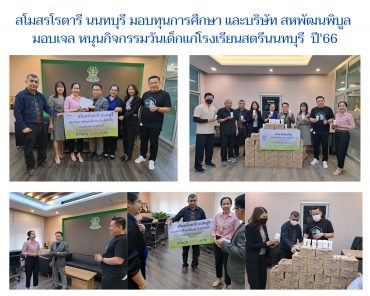 EZ Webmaster January 6, 2023 สโมสรโรตารี นนทบุรี มอบทุนการศึกษา และ บ.สหพัฒนพิบูล มอบเจล หนุนกิจกรรมวันเด็ก แก่โรงเรียนสตรีนนทบุรี ปี’66 EZ Webmaster January 6, 2023 มื่อวันที่ 4 มกราคม 2566 ณ ห้องผู้อำนวยการโรงเรียนสตรีนนทบุรี ดร.ฉัตรชัย ธรรมครบุรี ผู้อำนวยการโรงเรียนสตรีนนทบุรี นางสาวสุพัตรา พรหมศร ประธานเครือข่ายผู้ปกครองโรงเรียนสตรีนนทบุรี พร้อมด้วยสมาชิกเครือข่ายรับมอบทุนการศึกษาจากนางจารุวรรณ์ สุขสวัสดิ์ เลขานุการสโมสรโรตารี นนทบุรี ปี 2565-2566 จำนวน 5,000 บาท และบริษัท สหพัฒนพิบูล มอบเจลทำความสะอาดมือป้องกันโควิด จำนวน 1,500 ชิ้น เพื่อสนับสนุนกิจกรรมวันเด็ก ในวันศุกร์ที่ 6 มกราคม 2566… Continue Reading